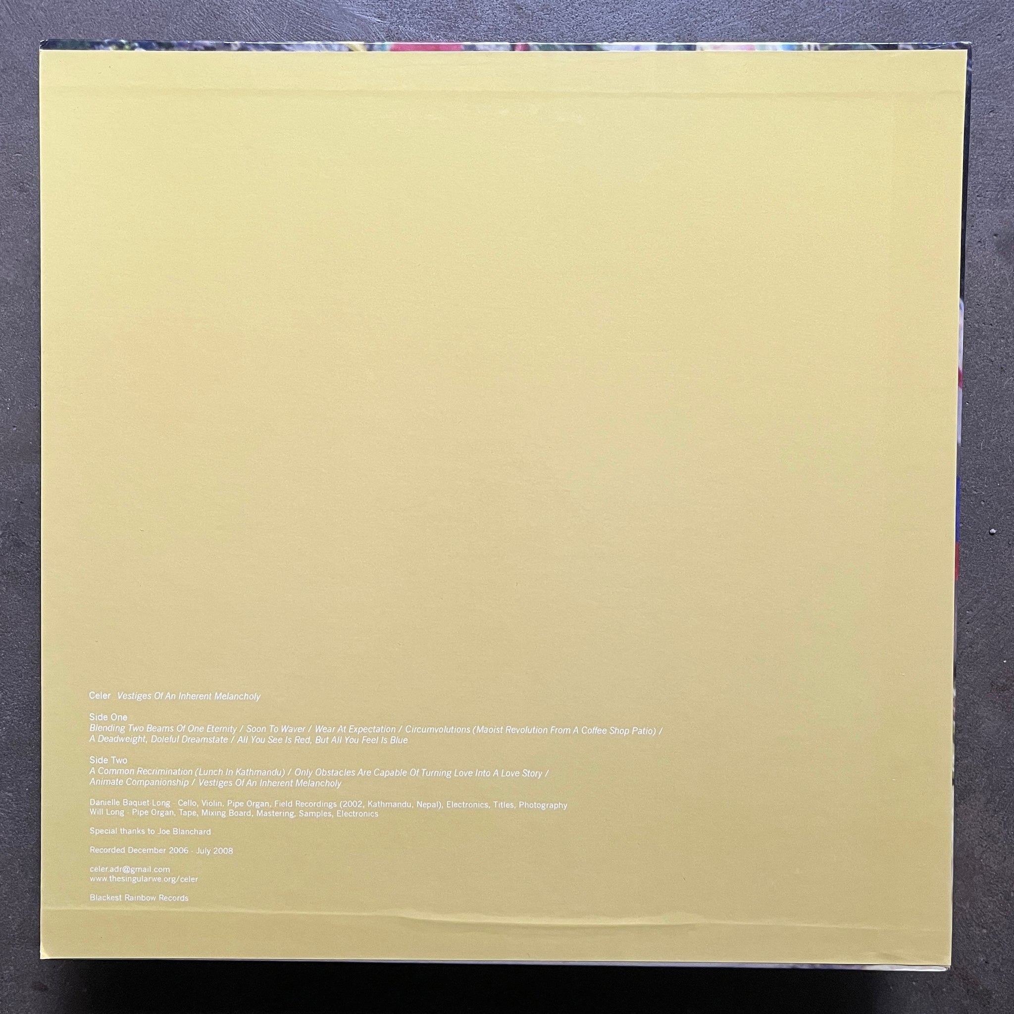 Deeply contemplative recordings with travelogue elements from Northern India / Nepal?  Great early Celer release.  (NM/VG+)