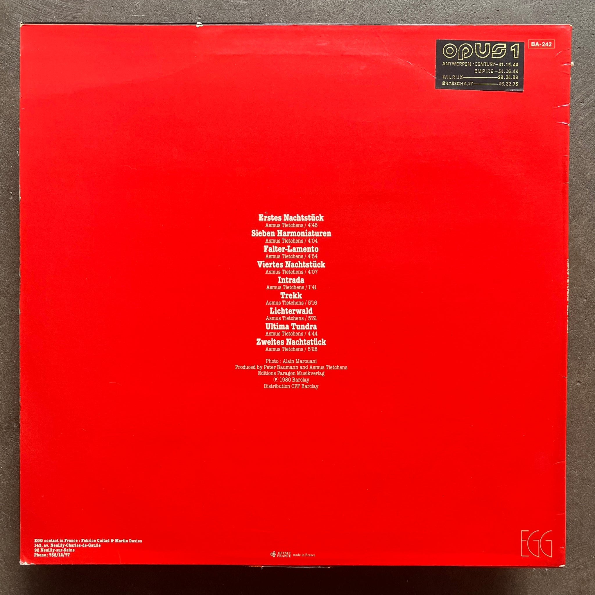 Electronic composition from legendary German (and potential Werkbund brain) Asmus Tietchens. Subtly upsetting yet engrossing! (NM)