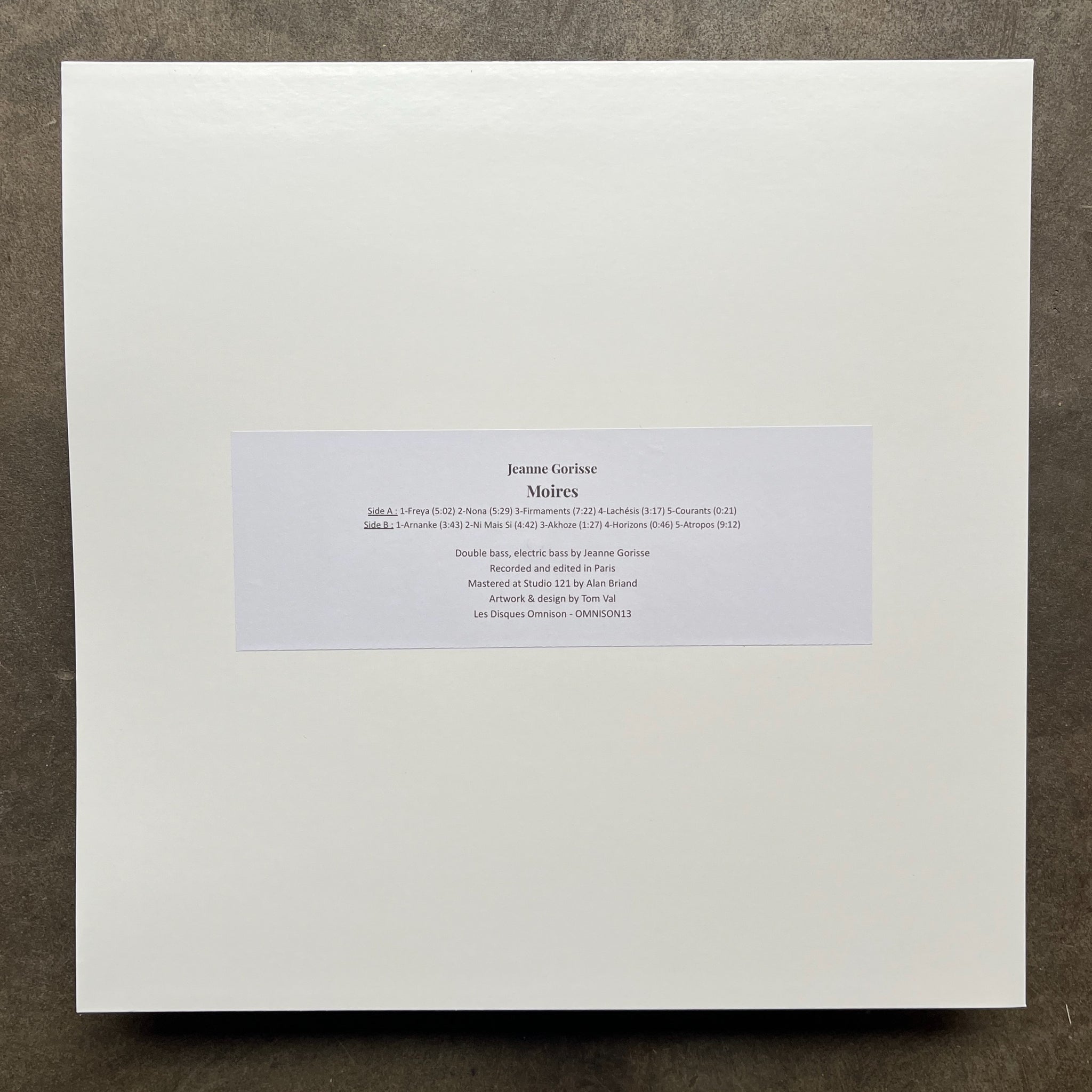 Without a doubt, this is a highly personal mix influenced by Jeanne's experience of playing and improvising in different contexts; from playing classical and ancient music to club-culture fueled music, from playing in Paris underground venues like Les Instants Chavirés, Le Non Jazz or Chair de Poule to composing soundtracks for theater. A status that reflects a new generation of talented experimental musicians for whom stylistic scenes no longer exist in isolation, one that navigates music landscapes transformed by globalization, post-internet culture, the collapse of hierarchies between "high" and "low" cultures, for whom hybridity is a lived musical reality, equally at ease performing in different settings everyday. This versatility finds one of its expression on Moires. Within this world, Jeanne Gorisse’s bowed-bass-centered approach stands out for its radical rawness, offering a direct and quiet powerful voice." (Mint / New)