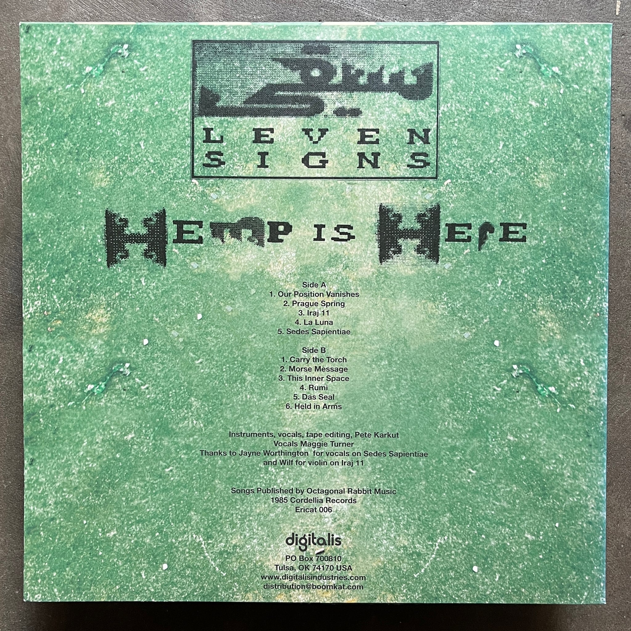 So-called ‘Psychedelic music’ is easy to get hold of. Backwards guitar, constantly mutating 303s and vocals wreathed in endless echo all instantly suggest the feeling of tripping. So much so, in fact, that they have become a comforting way of covering up the potentially difficult and upsetting aspects a psychedelic experience. Why have your whole way of experiencing reality ripped out from underneath you when you could just listen to a Goa trance record or Nuggets 2? Music that aims toward really giving one a sense of that hyper-sensory, fizzing, always-now feeling is rare. Nurse With Wound can do it or sure, some bits of Black Dice maybe, Coil sometimes, Michel Redolfi’s Desert Tracks possibly. I have always thought of this record as a definite contender. Hemp is Here was originally released in 1985 on the wonderful Cordelia Records. It combines dense layers of elliptical percussion, organ drones, tape loops and unearthly vocals with a totally gone sense of time and structure to bewildering effect. Not that it sounds remotely the same, but it’s tumbling in the same corner of the universe as the whole Flaming tunes / General Strike / Cold Storage thing or even Rimarimba / The Same et al (having originally been released on cassette by Robert Cox via Unlikely). It’s dizzying, deeply strange and psychoactive pop music from deep in 80s Dreamtime.. not to be missed. Digitalist RP! (NM)