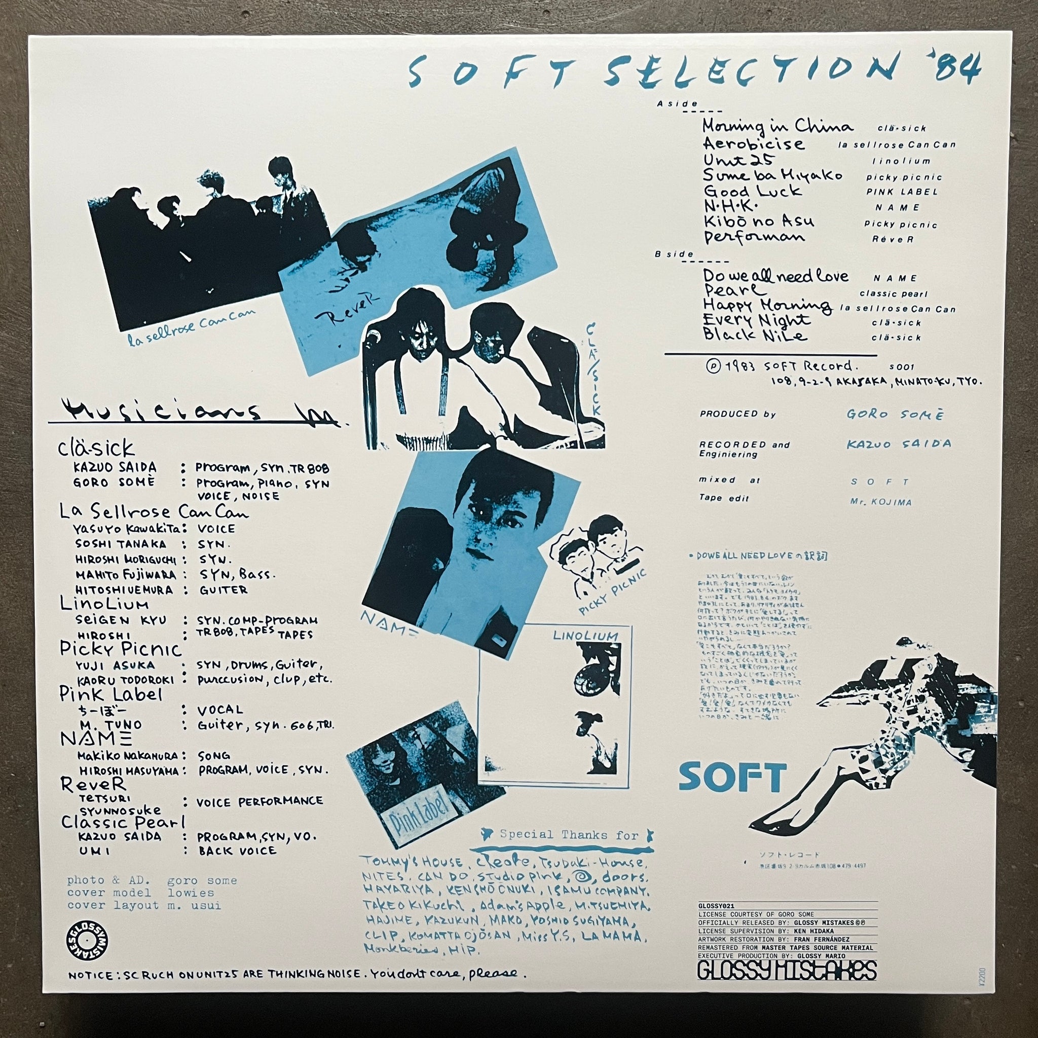 Tracklist A1 Clä-Sick – Morning In China A2 La Sellrose Can Can – Aerobicise A3 Linolium – Unit 25 A4 Picky Picnic - Sume Ba Miyako A5 Pink Label – Good Luck A6 Name – N.H.K. A7 Picky Picnic – Kibo No Asu A8 Rever –Performan B1 Name – Do We All Need Love B2 Classic Pearl – Pearl B3 La Sellrose Can Can – Happy Morning B4 Clä-Sick – Every Night B5 Clä-Sick – Black Nile