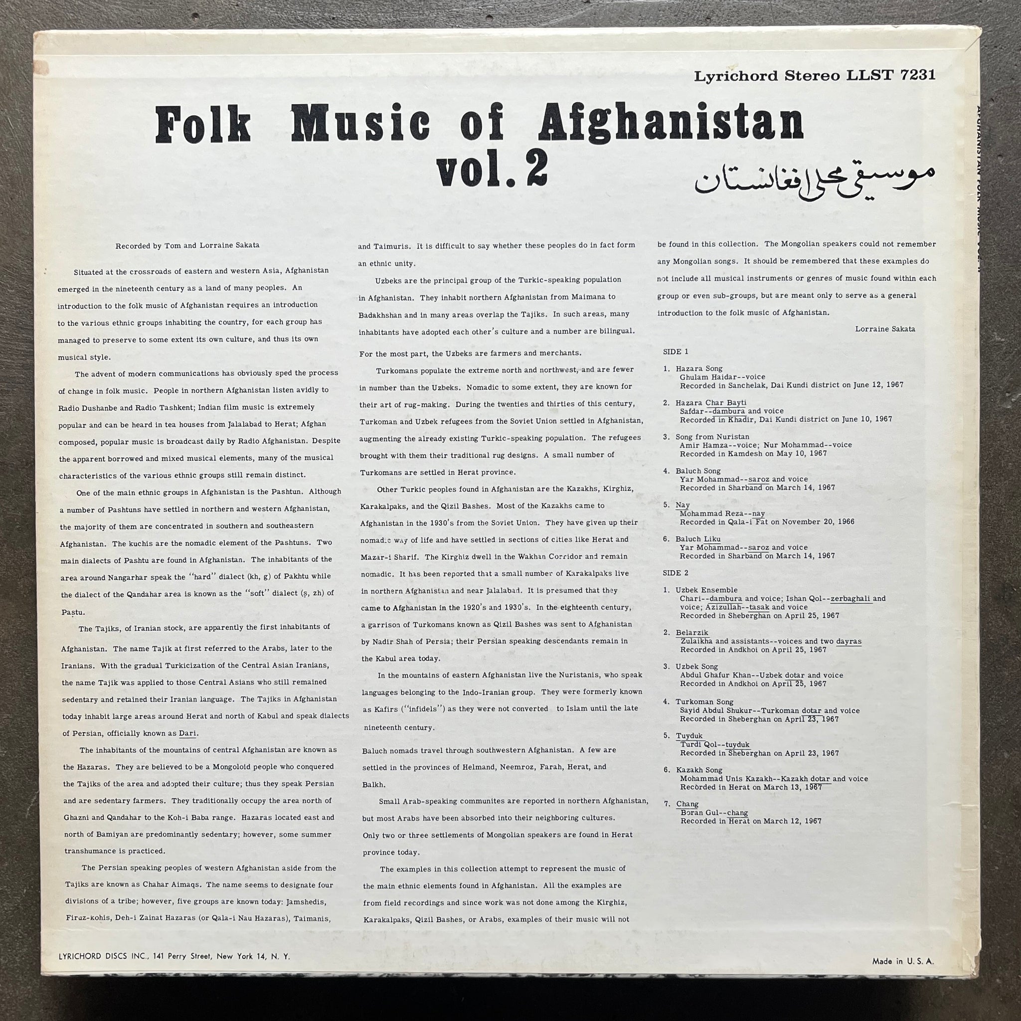 Label: Lyrichord – LLST 7231 Series: Folk Music Of Afghanistan – Vol. 2 Format: Vinyl, LP, Album, Compilation, Stereo Country: US Released: 1971 Genre: Folk, World, & Country Style: Field Recording, Klasik, Folk