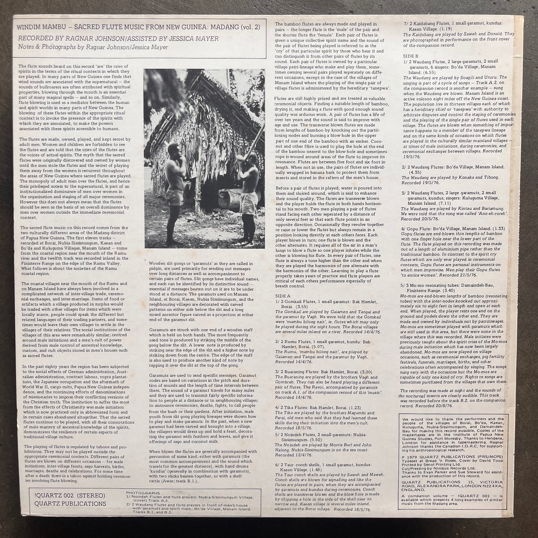 Acclaimed sacred flute recordings from Madang region of Papua New Guinea, published by David Toop's iconoc Quartz label. (NM)