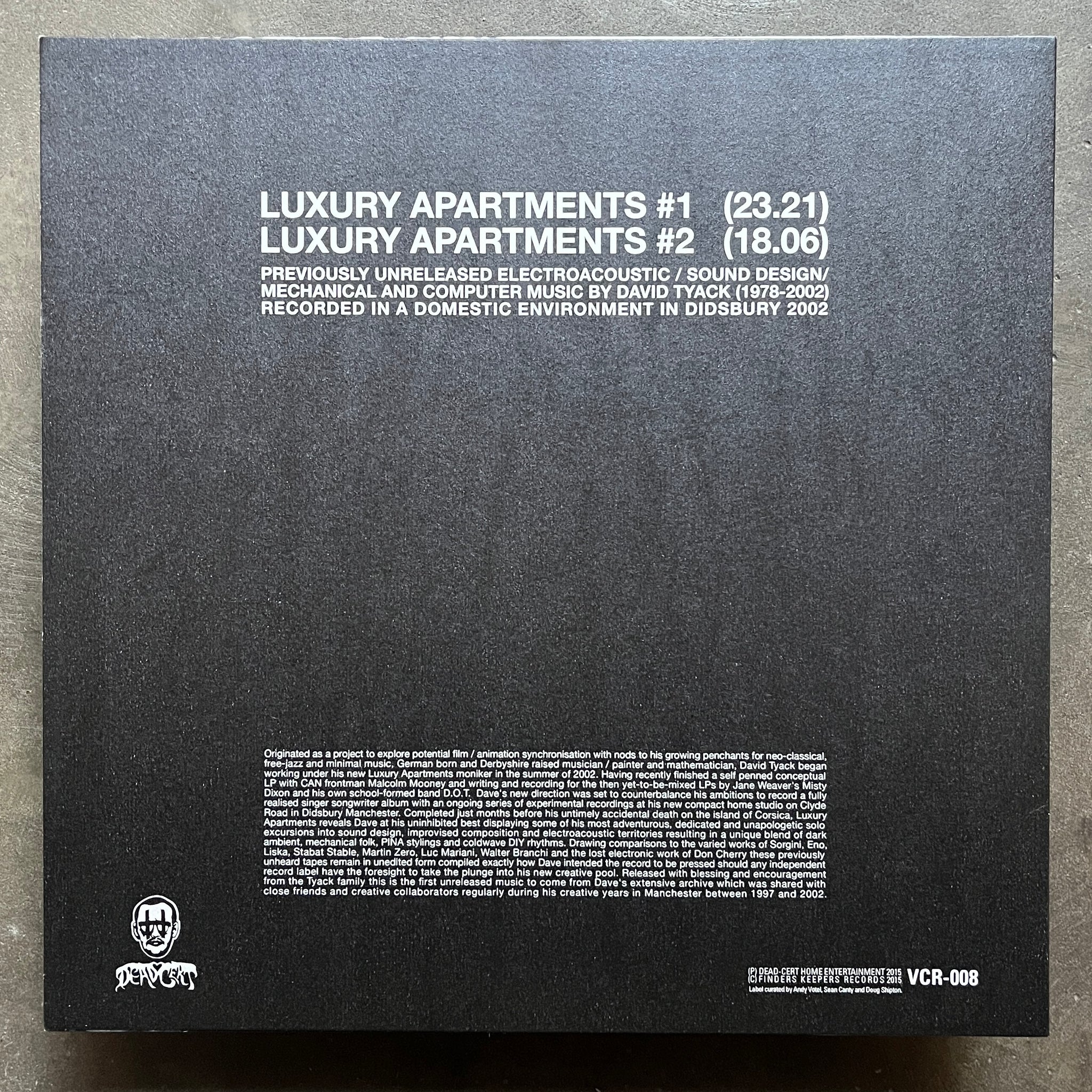 Originated as a project to explore potential film/animation synchronisation with nods to his growing penchants for neo-classical, fee jazz and minimal music, German born and Derbyshire raised musician, painter and mathematician David Tyack began working under his new Luxury Apartments moniker in the summer of 2002.