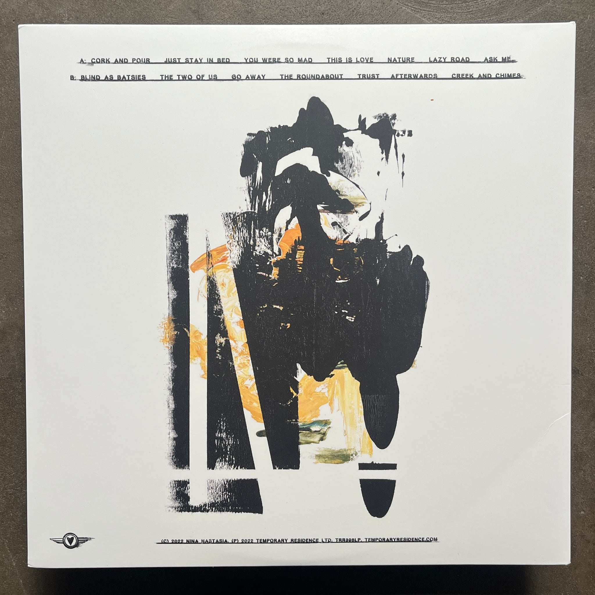 Tracklist A1 Cork and Pour 0:13 A2 Just Stay in Bed 2:12 A3 You Were So Mad 2:53 A4 This Is Love 3:11 A5 Nature 2:57 A6 Lazy Road 2:46 A7 Ask Me 3:41 B1 Blind as Batsies 2:56 B2 The Two of Us 2:38 B3 Go Away 2:19 B4 The Roundabout 2:10 B5 Trust 3:20 B6 Afterwards 2:35 B7 Creek and Chimes 0:33