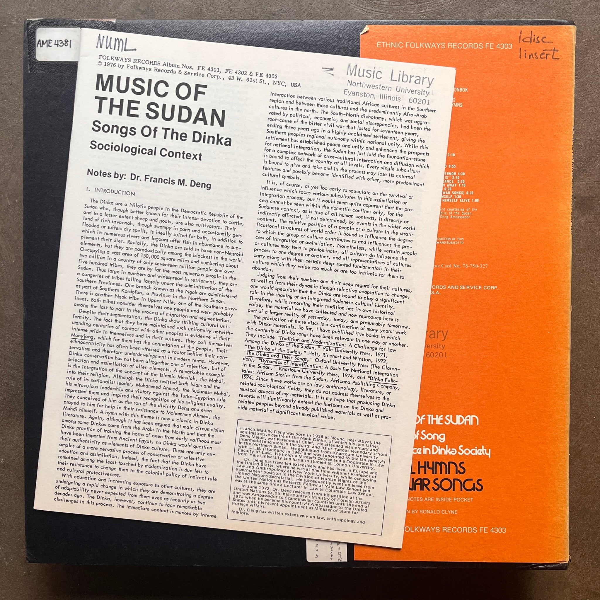 War and funeral songs of the Dinka peoples of Southern Sudan. (VG+/VG+)