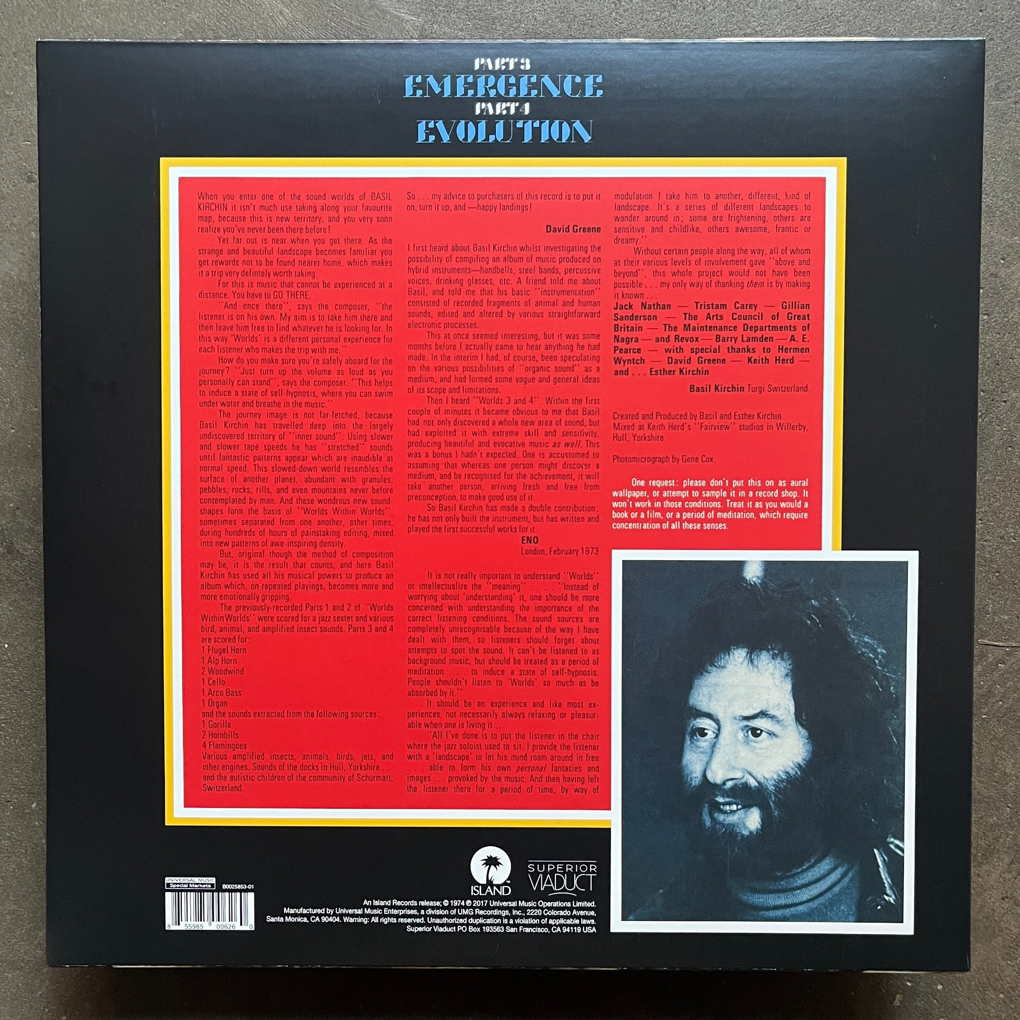 Mesmerising and unbelievably prescient early Concrète / soundscaping masterpiece from British composer Basil Kirchin on Island Records. Certainly not popular at the time but spawning a tidal wave of composers in its wake. Quite literally worlds within worlds. (NM)