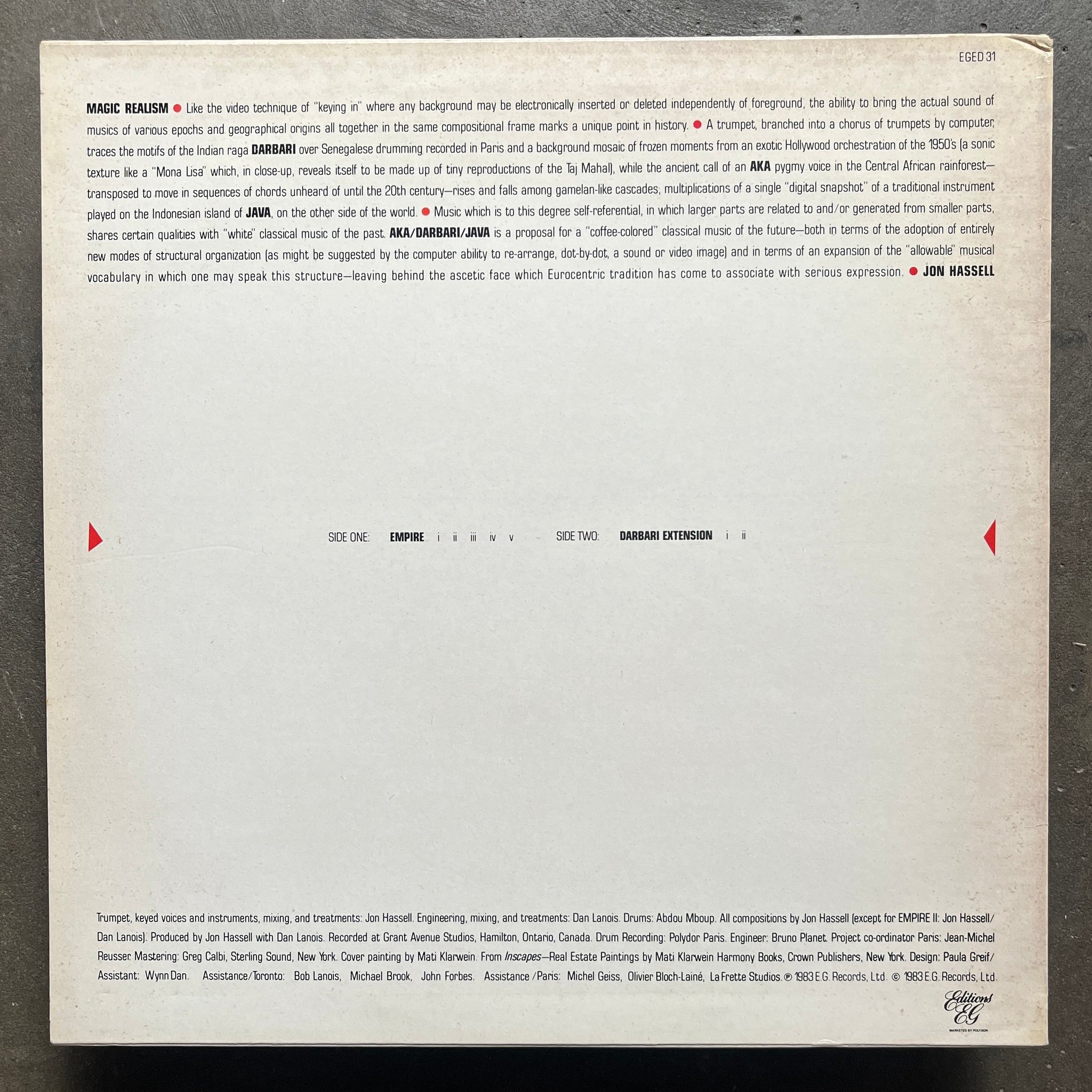 Label: Editions EG – EGED 31 Format: Vinyl, LP, Album Country: UK Released: 1983 Genre: Electronic, Jazz Style: Experimental, Ambient