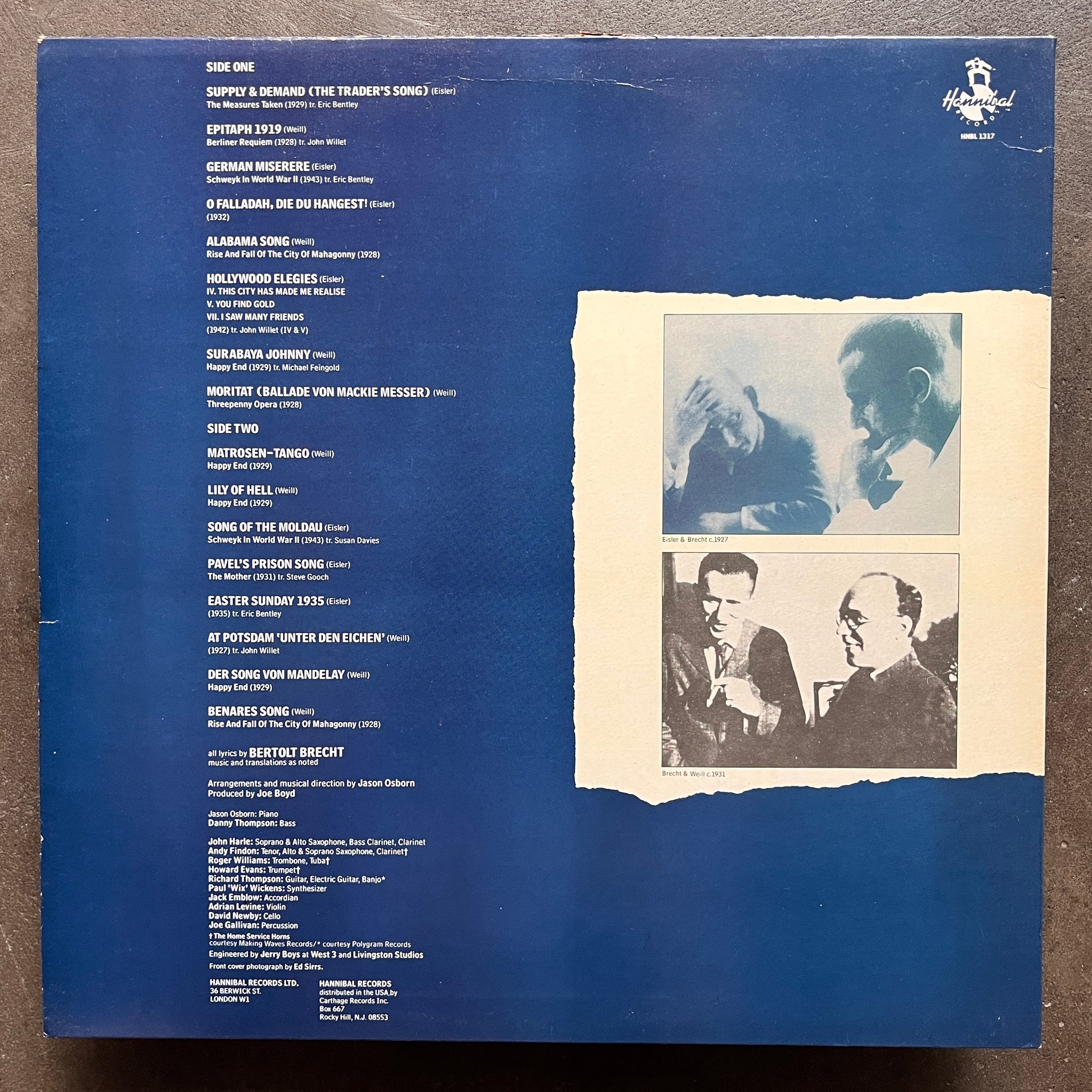 Tracklist A1 Supply & Demand (The Trader's Song) 2:57 A2 Epitaph 1919 1:59 A3 German Miserere 1:39 A4 O Falladah, Die Du Hangest! 2:41 A5 Alabama Song 2:51 Hollywood Elegies (2:55) A6.1 IV. This City Has Made Me Realise A6.2 V. You Find Gold A6.3 VII. I Saw Many Friends A7 Surabaya Johnny 3:59 A8 Moritat (Ballade Von Mackie Messer) 2:39 B1 Matrosen-Tango 4:21 B2 Lily Of Hell 2:25 B3 Song Of The Moldau 1:40 B4 Pavel's Prison Song 3:00 B5 Easter Sunday 1935 1:24 B6 At Potsdam 'Unter Den Eichen' 2:22 B7 Der Song Von Mandelay 2:12 B8 Benares Song 3:52