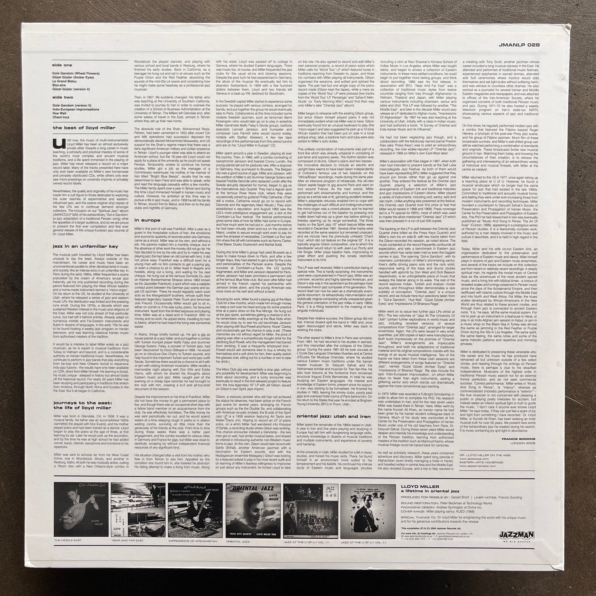 First survey proper into the mesmerising east / west jazz world of esteemed musician and ethnomusicologist Lloyd Miller. Showstopper! (NM)