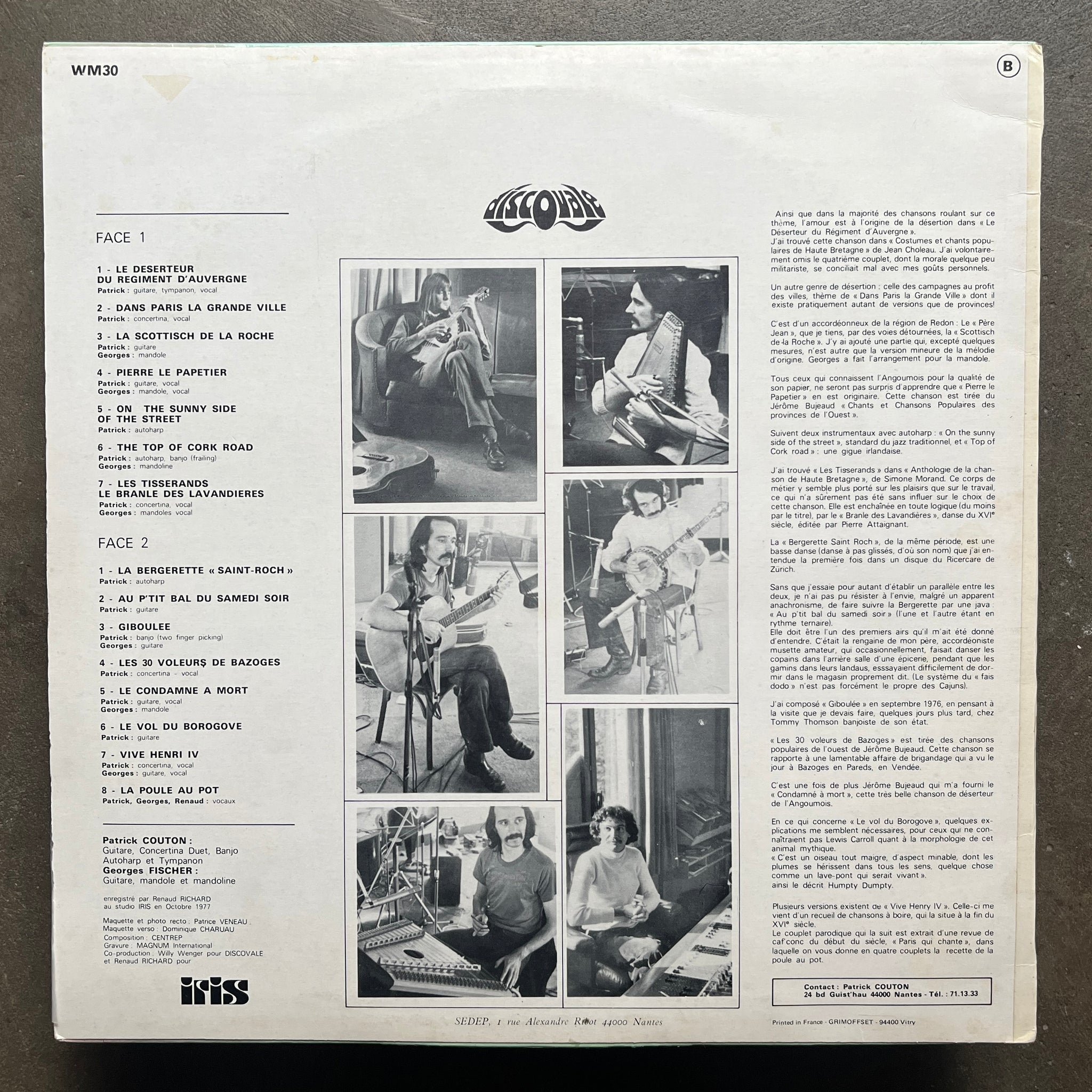 Tracklist A1 Le Deserteur du Regiment D'Auvergne A2 Dans Paris la Grande Ville A3 La Scottisch de la Roche A4 Pierre le Papetier A5 On the Sunny Side of the Street A6 The Top of Cork Road A7 Les Tisserands le Branle des Lavandieres B1 La Bergerette B2 Qu P'tit Bal du Samedi Soir B3 Giboulee B4 Les 30 Voleurs de Bazoges B5 Le condamne a Mort B6 Le Vol du Borogove B7 Five Henri IV B8 La Poule au Pot