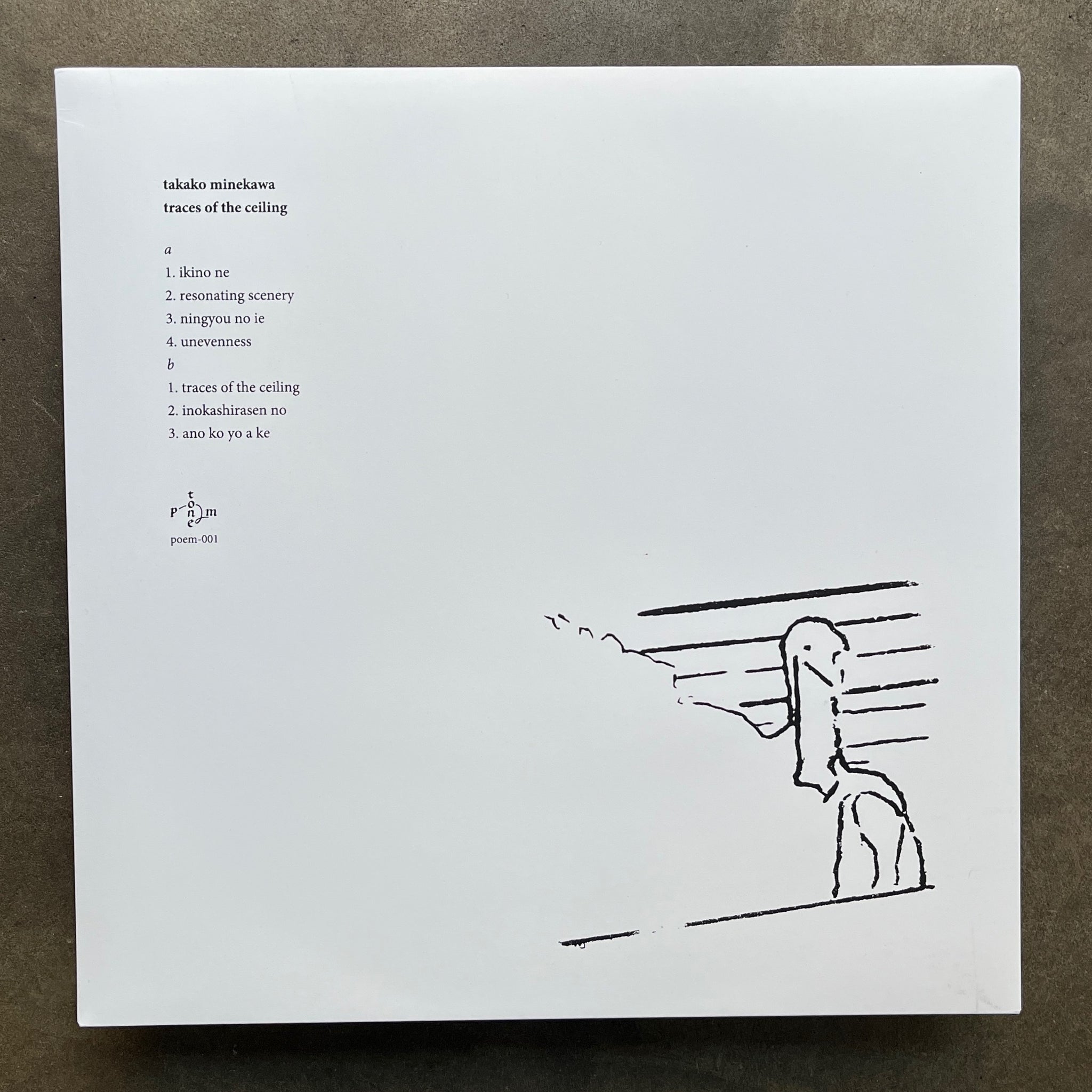 'Traces of the ceiling’ is the new album by Takako Minekawa, an artistic collaboration between Minekawa who composed, performed and recorded the works contained within - and artist Ippei Matsui, who created and designed the accompanying elaborate five-panel fold out sleeve, risograph inserts, and vinyl. ‘traces of the ceiling’ is also the debut release from Portland, Oregon based shop, label, and event series tone poem.