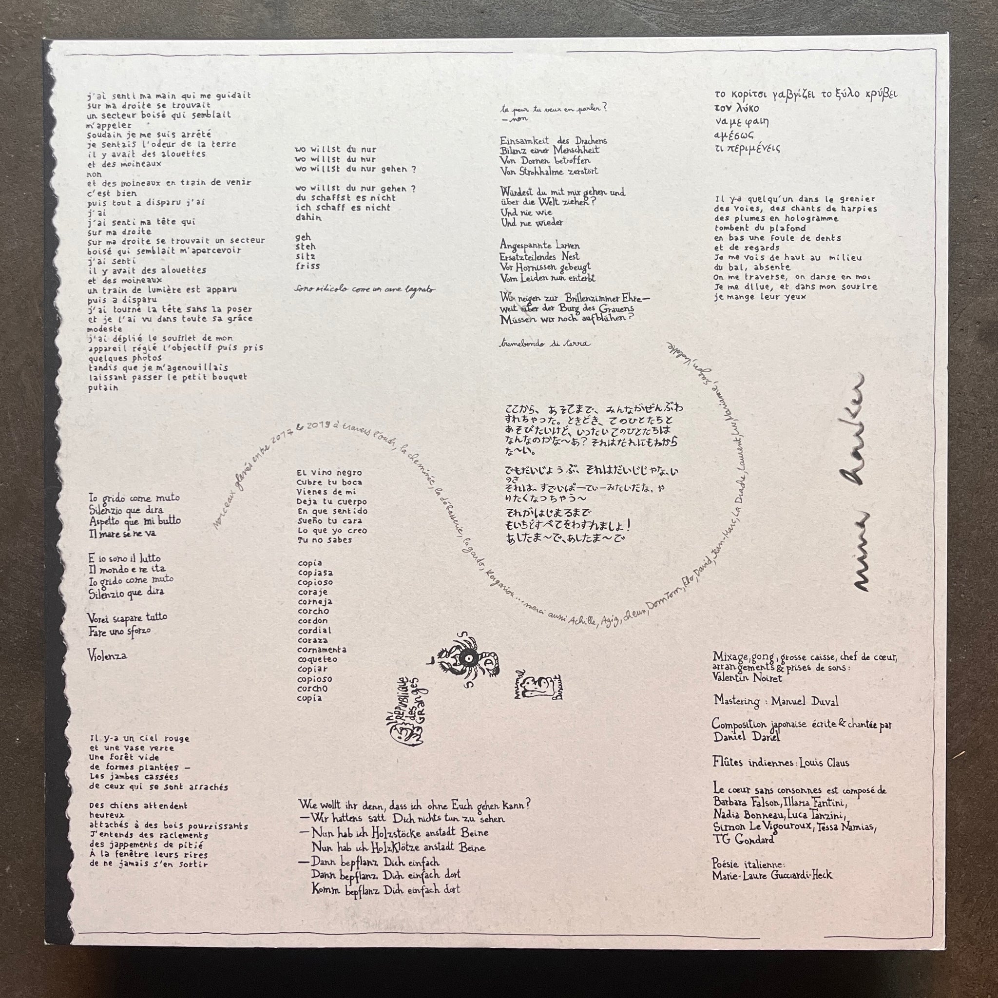Restless and shapeshifting whilst constantly darting between language and genre - from delicate but scratchy folk in Greek via blunt and witchy drum machine punk in German and wordless yet French-titled blown out gong bath gone wrong, to a deliriously catchy camp-fire chant in what might be Italian (??), this is a complete one off. There are occasional signposts though. There is a mysterious collaged quality that could be something in the Förlag För Fri Musik universe. The slightly screwy attitude and scant regard for fidelity could have shown up on Siltbreeze, whilst the sudden moments of hushed beauty emerging out of the murk could be from any number 90s NZ lathe-cut oneaways.Although, it’s effortlessly modern, but as obscure and enticing as anything you could only hope to land up through endless Discogs scouring or the most advanced search tactics.Underground records come and go, sometimes you close the case and file the record away thinking no more about it. But sometimes it’s not that straight forward. Some remain pleasurably unsolved mysteries, itches that can’t ever quite be scratched, stone whodunnits. This is one of those, so glad it’s back... (NM/NM)