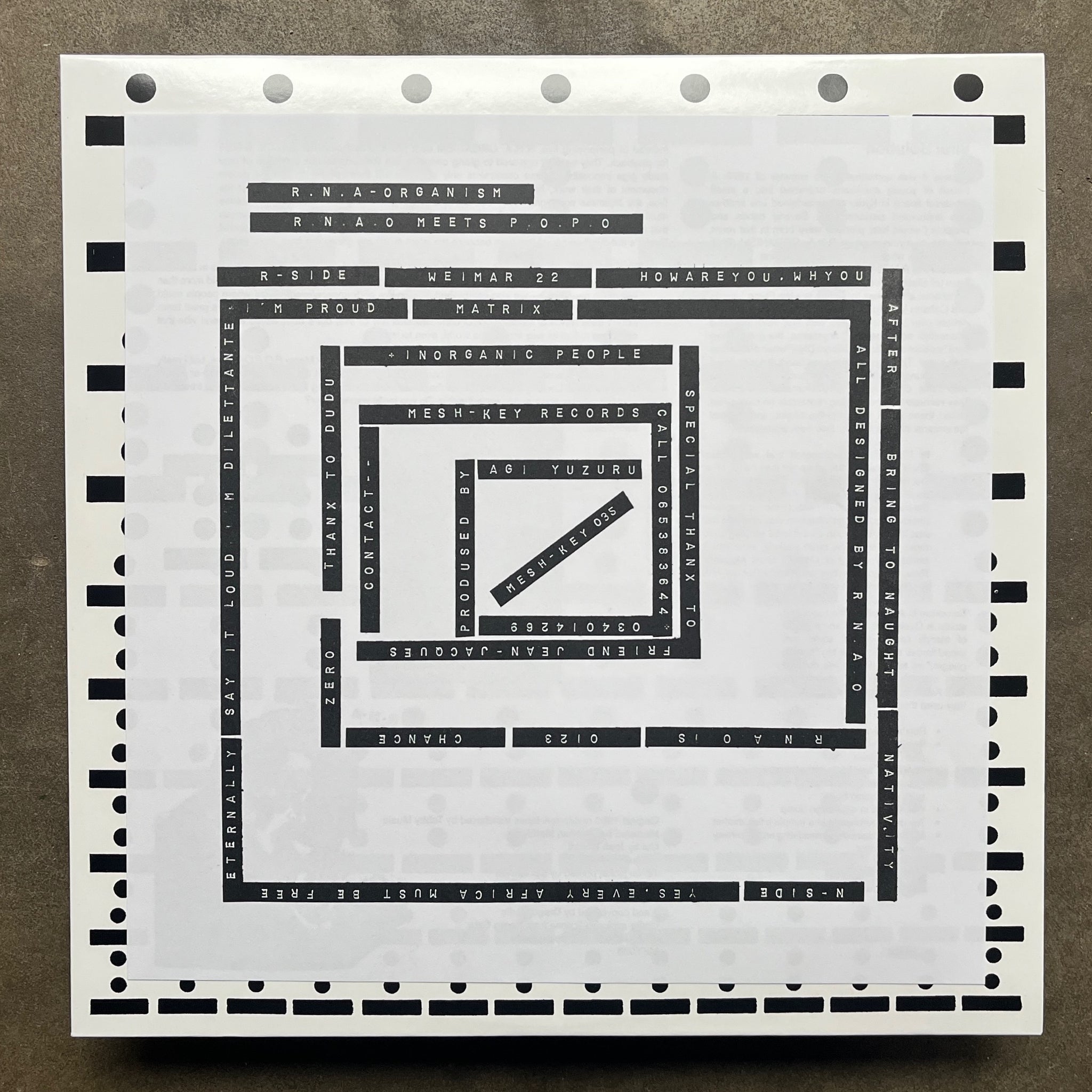 Tracklist R1 Weimar 22 R2 Howareyou, Whyou R3 After R4 Bring To Naught R5 Nativity N1 Yes, Every Africa Must Be Free Eternally N2 Say It Loud, I'm Dilettante, I'm Proud N3 Matrix