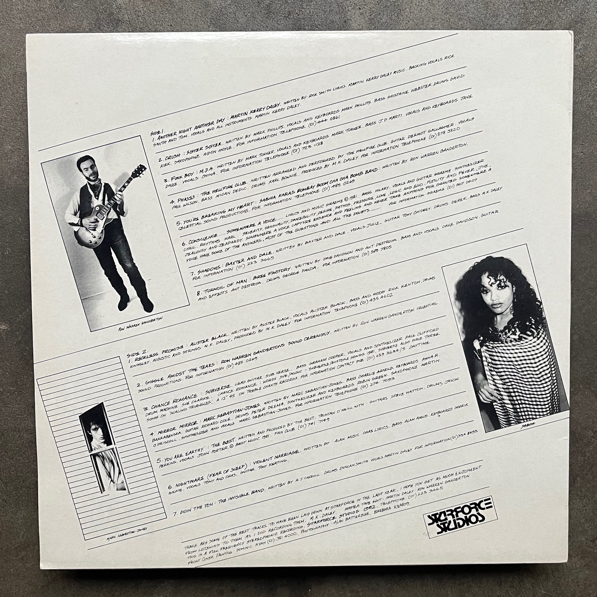 Tracklist A1 Martin Kerry Daisy– Another Night Another Day A2 Sister Sister (2)– Crush A3 M.D.A. (3)– Funk Boy A4 The Hellfire Club– Phasss A5 Sabiha Karas Bombay Boom Cha Cha Bomb Band– You're Breaking My Heart A6 Somewhere A Voice– Conscience A7 Baxter And Dale– Shadows A8 Bree Factory– Turmoil Of Man B1 Alister Black– Reckless Promise B2 Ron Warren Gandertons Sound Ceremony*– Giggle Amidst The Tears B3 Subverse (4)*– Chance Romance B4 Marc Sebastian-Jones– Mirror Mirror B5 The Best (4)– You Are Earthy B6 Violent Marriage– Nightmare (Fear Of Sleep) B7 The Invisible Band*– Doin' The Ton