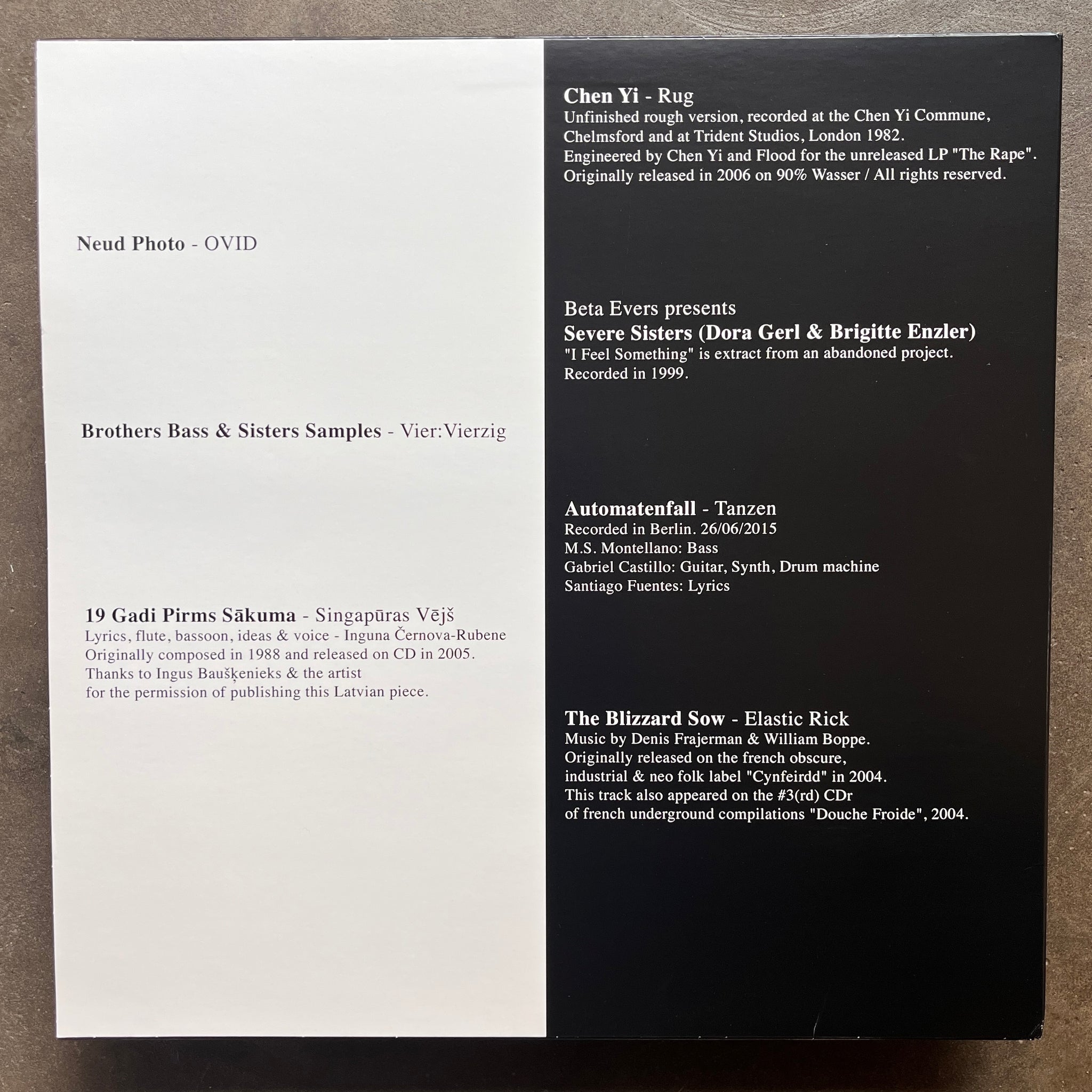 Tracklist Q1 Unknown Artist– Untitled Q2 Chen Yi – Rug Q3 Severe Sisters– I Feel Something Q4 Automatenfall– Tanzen Q5 The Blizzard Sow– Elastic Rick R1 Y Create– I Don't Want To Be R2 Neud Photo– OVID R3 Brothers Bass & Sisters Samples– Vier: Vierzig R4 19 Gadi Pirms Sākuma– Singapūras Vējš
