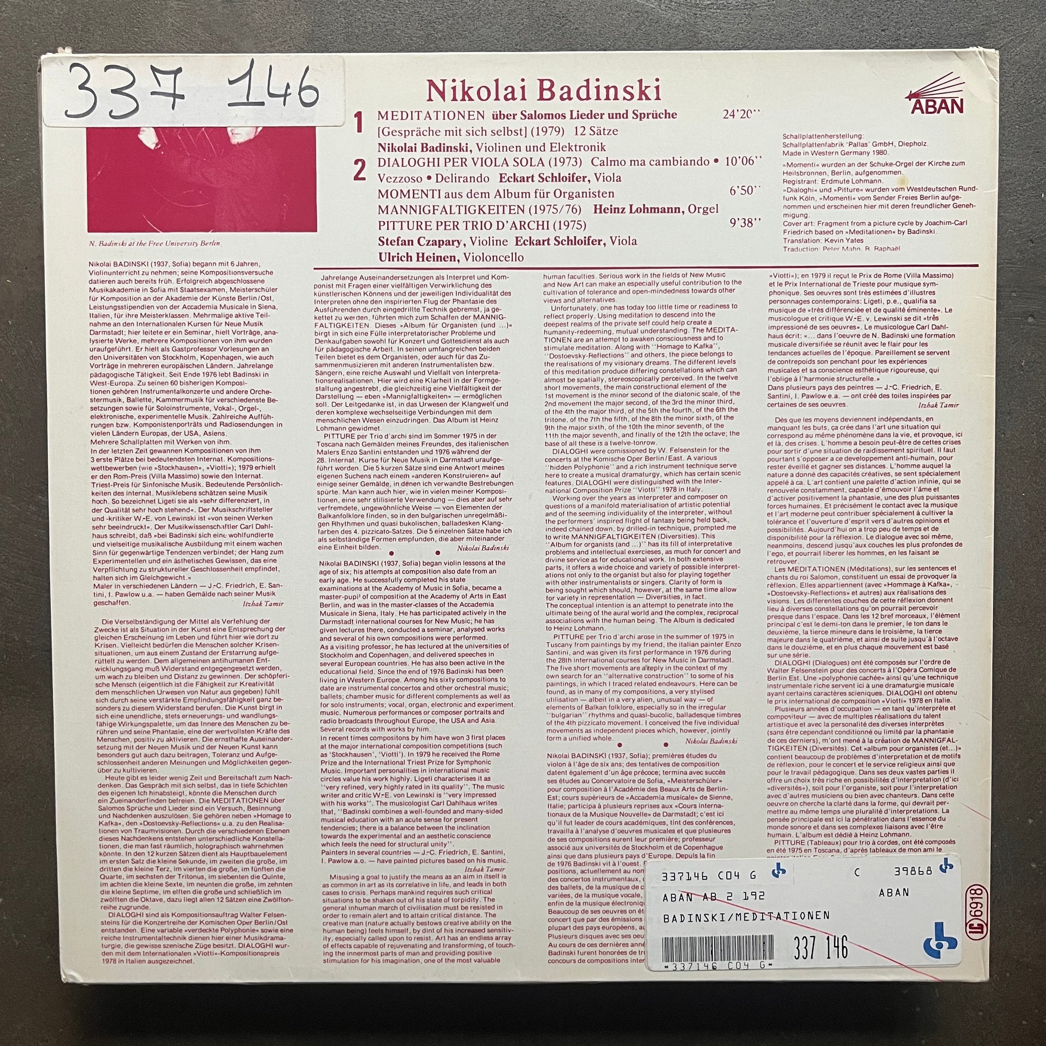Tense electro-acoustic composition from Bulgarian composer Nikolai Badinski on the German ABAN label (NM)