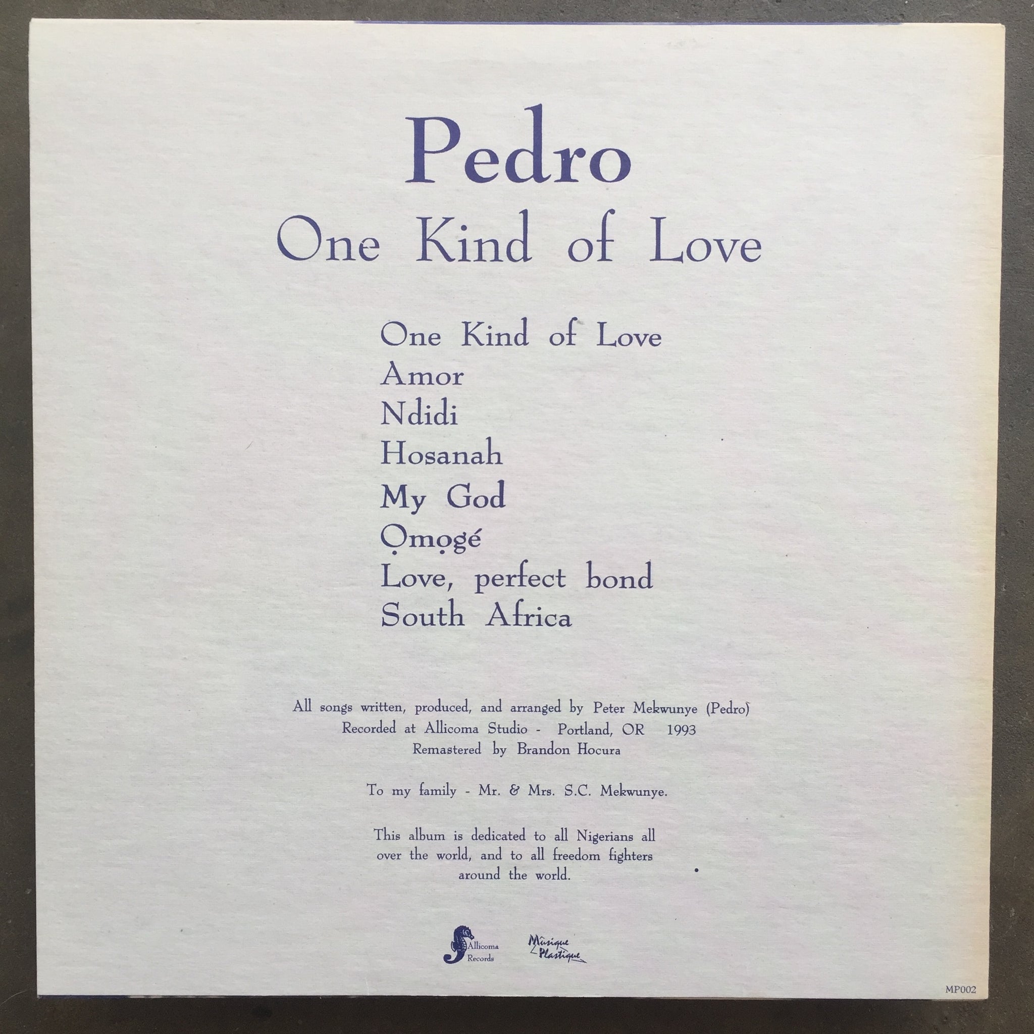 Tracklist A1 One Kind Of Love 3:57 A2 Amor 3:47 A3 Ndidi 3:33 A4 Hosanah 4:13 B1 My God 3:53 B2 Ọmọgé 2:52 B3 Love, Perfect Bond 3:32 B4 South Africa 3:01